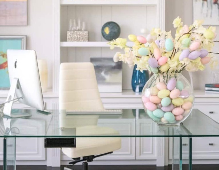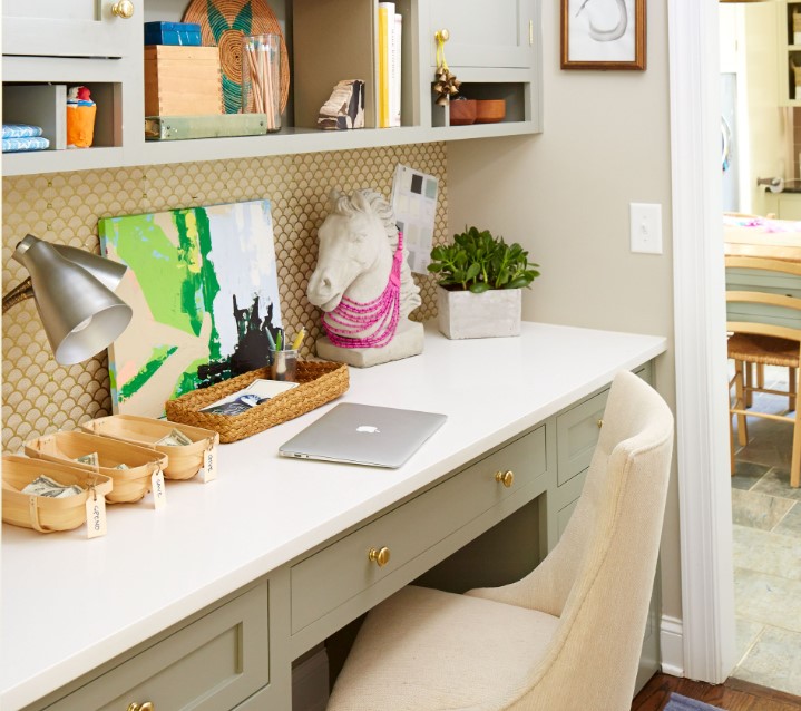 Dengan aksen dekoratif kecil, meja kerja menjadi ruang yang menyenangkan dan lebih mengundang semangat ringan sepanjang hari.